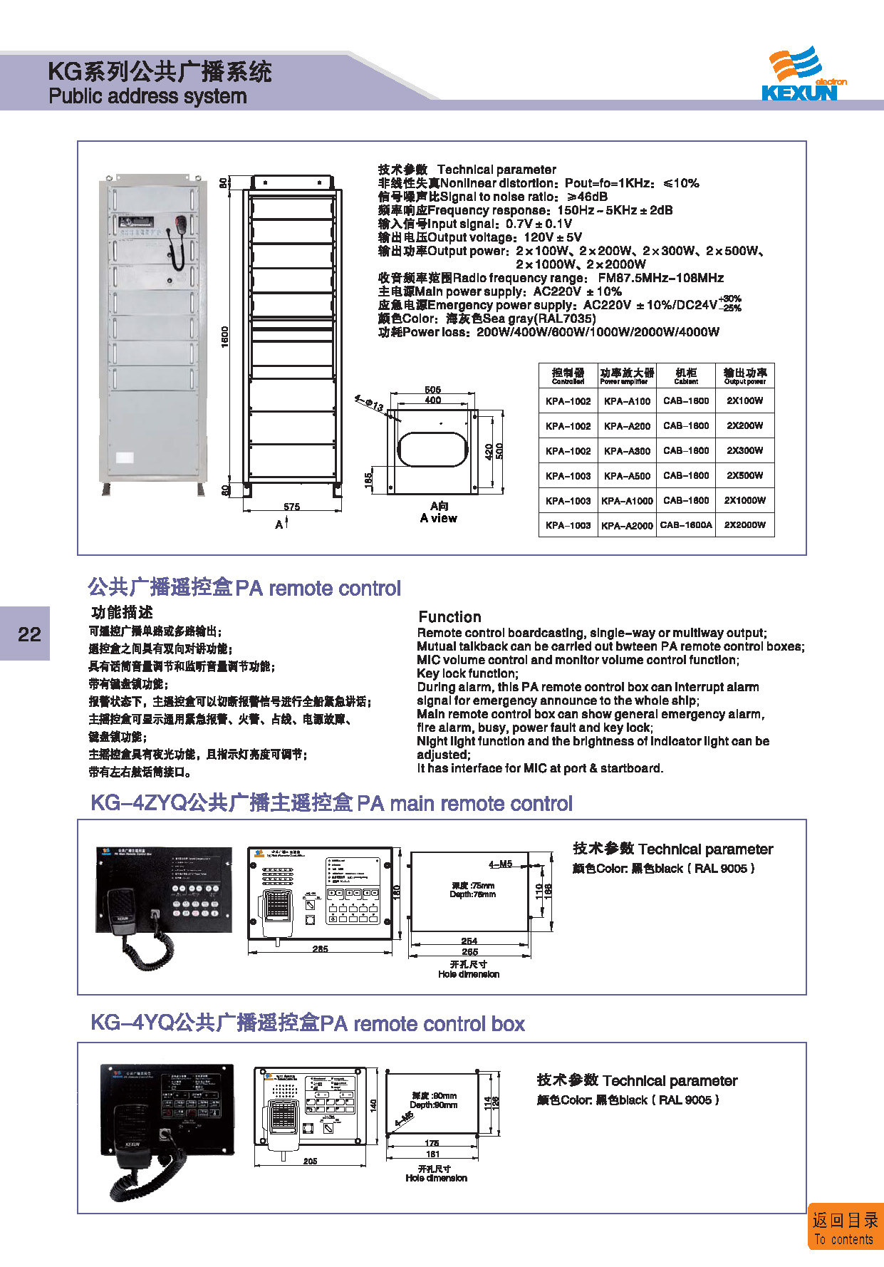 | 1 | KG-4 | 广播主机 Public address main unit | 碳钢 Carbon steel | 97Kg | IP 20 | 点击进入 Click to enter |