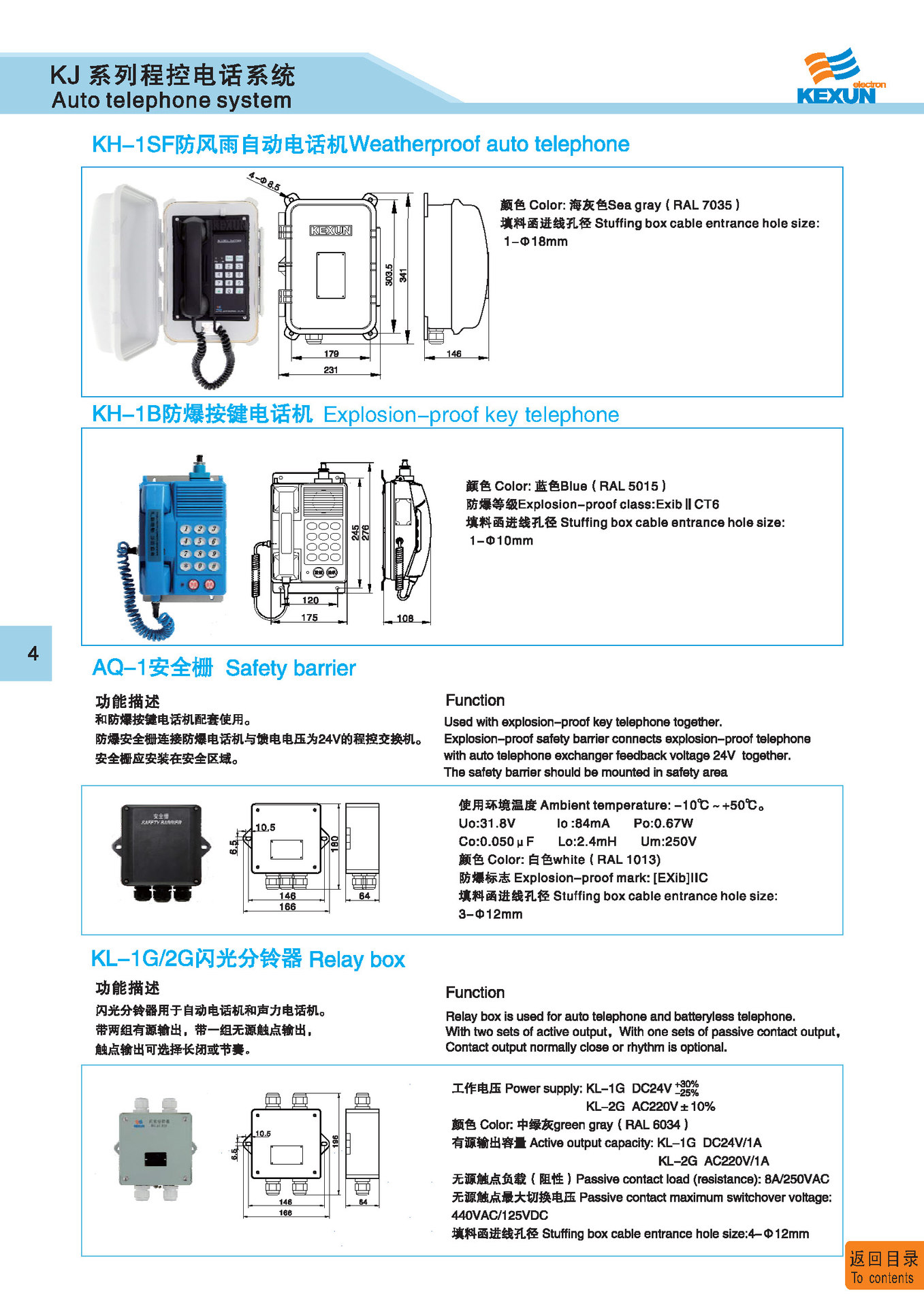 5 | KS-1J | 抗噪声直通声力电话机 | 阻燃ABS | 1.9Kg | IP 44 | |