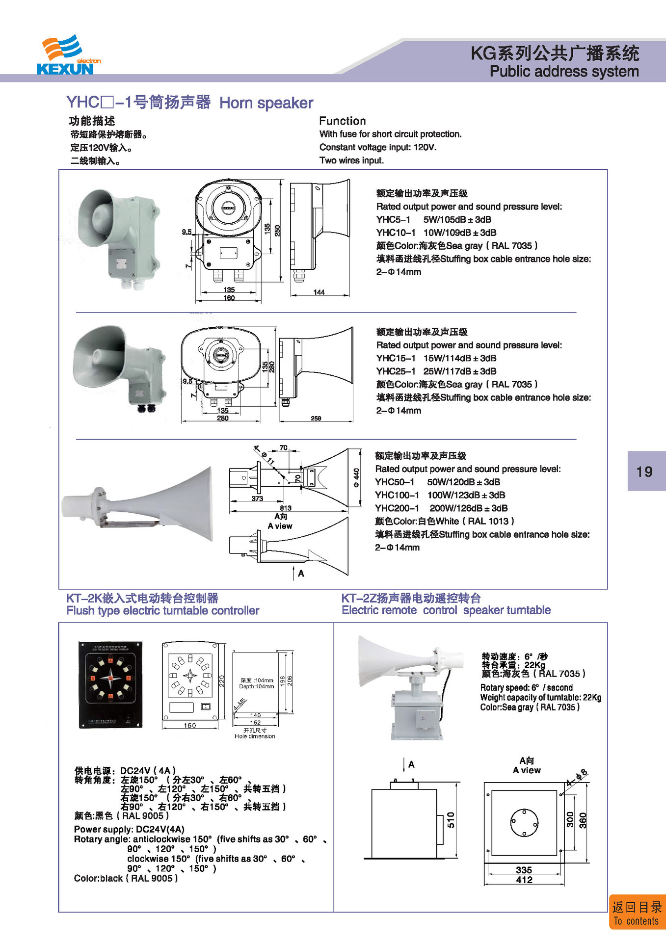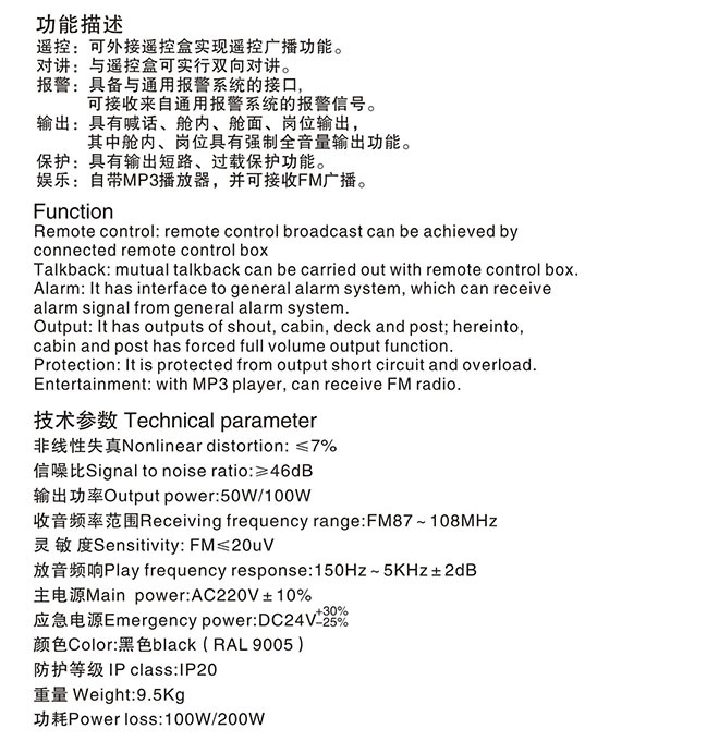 | 2 | KG-2T | 公共广播主机 Public address main nuit | 碳钢 Carbon steel | 46Kg | IP 20 | 点击进入 Click to enter |