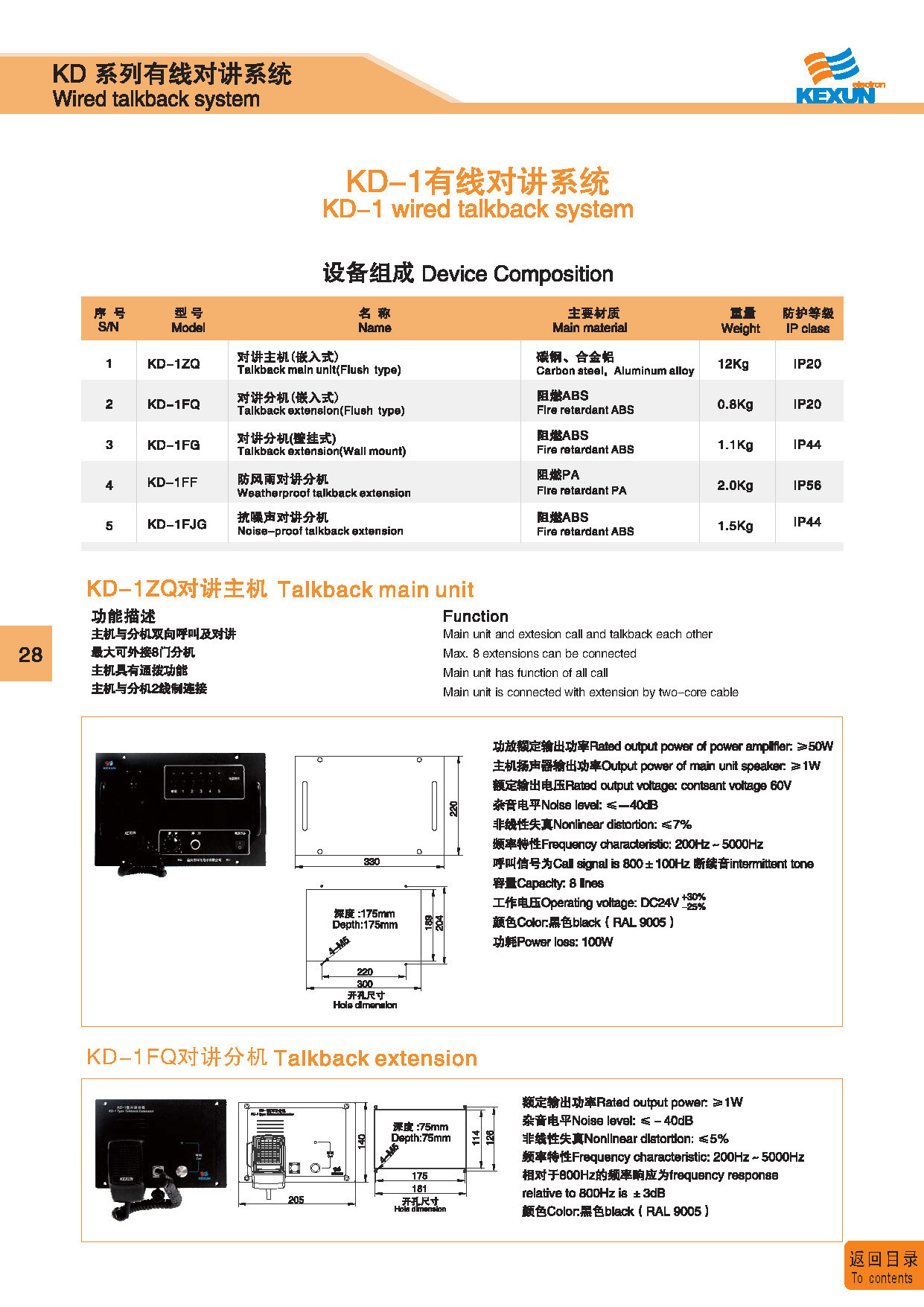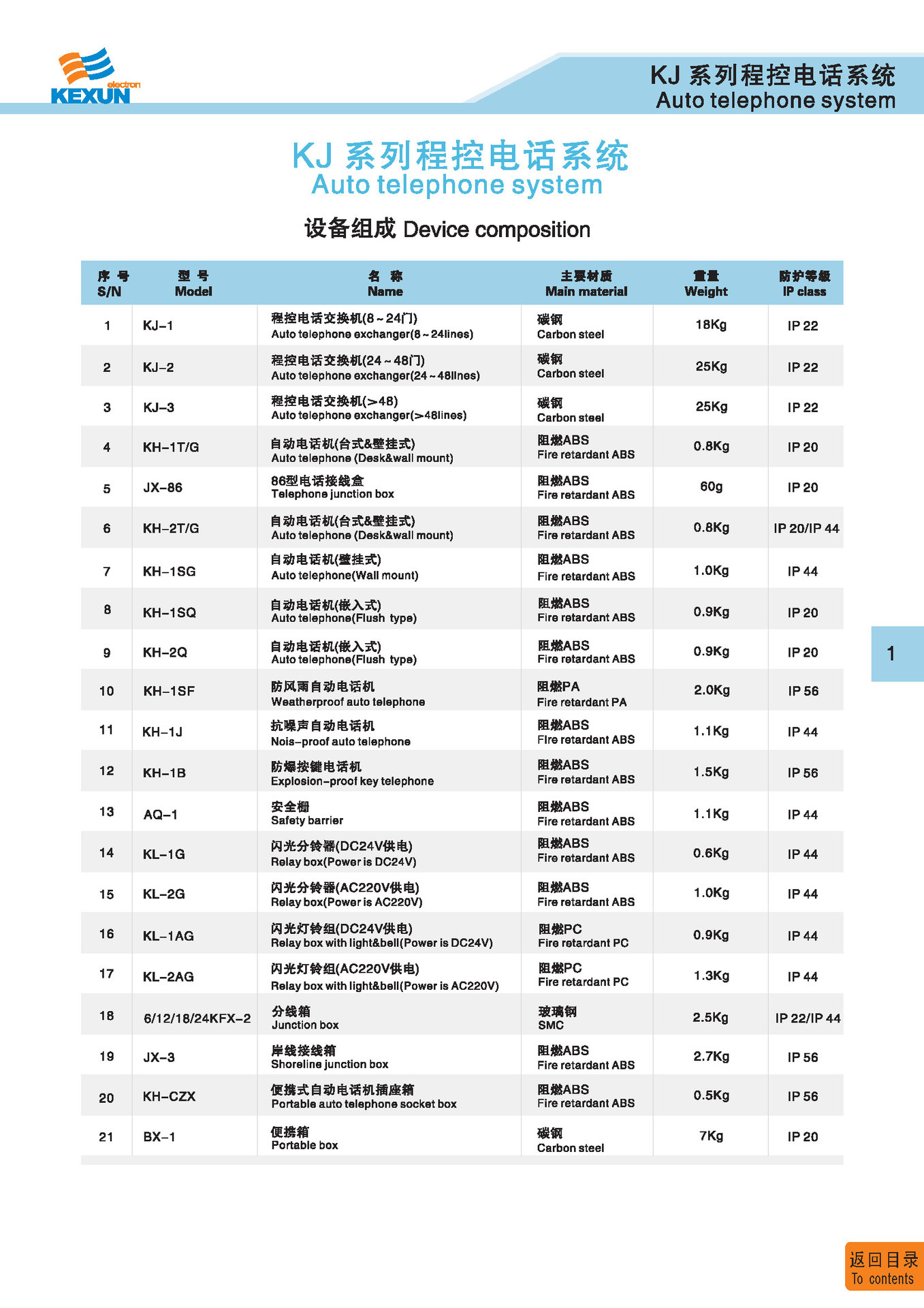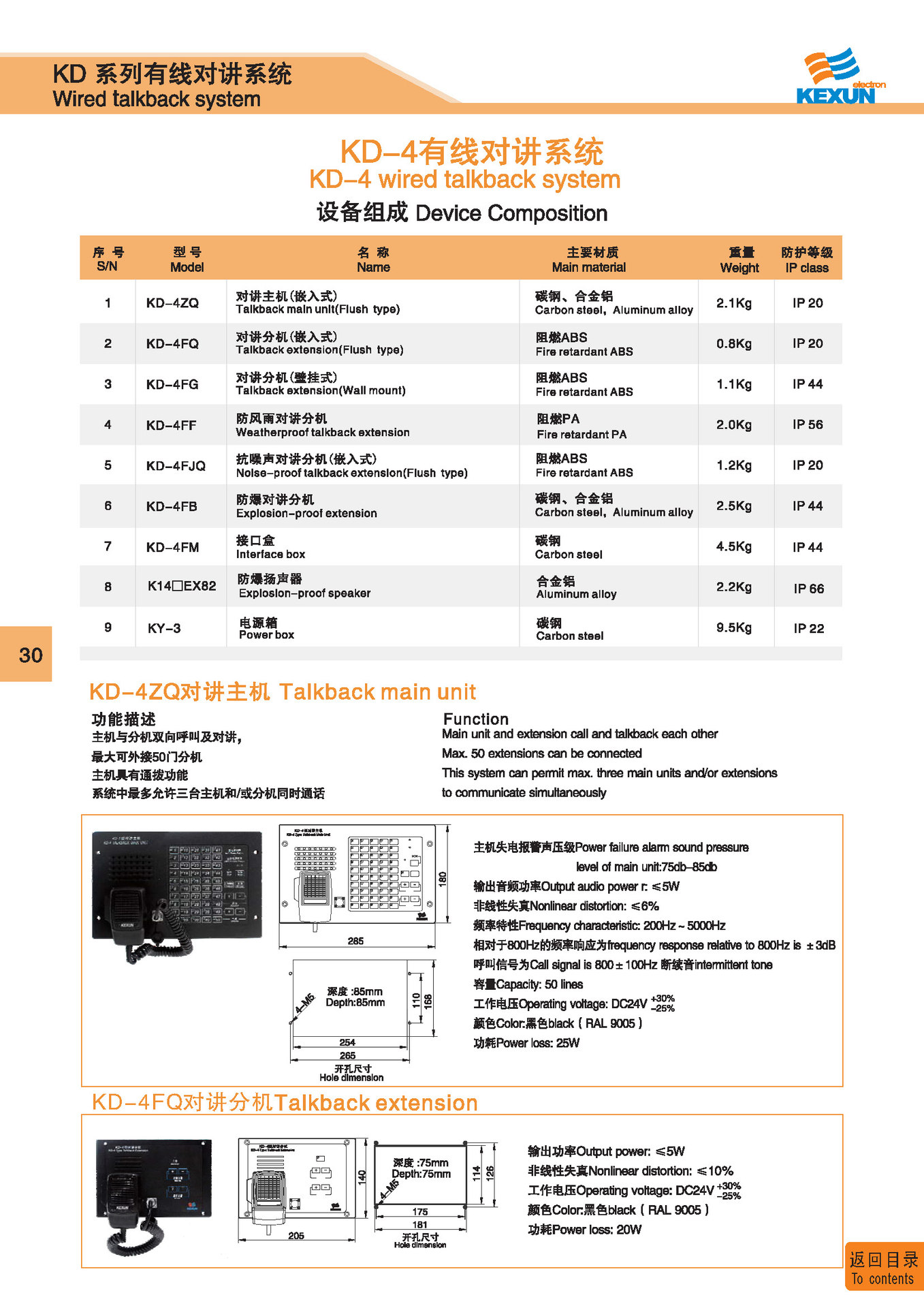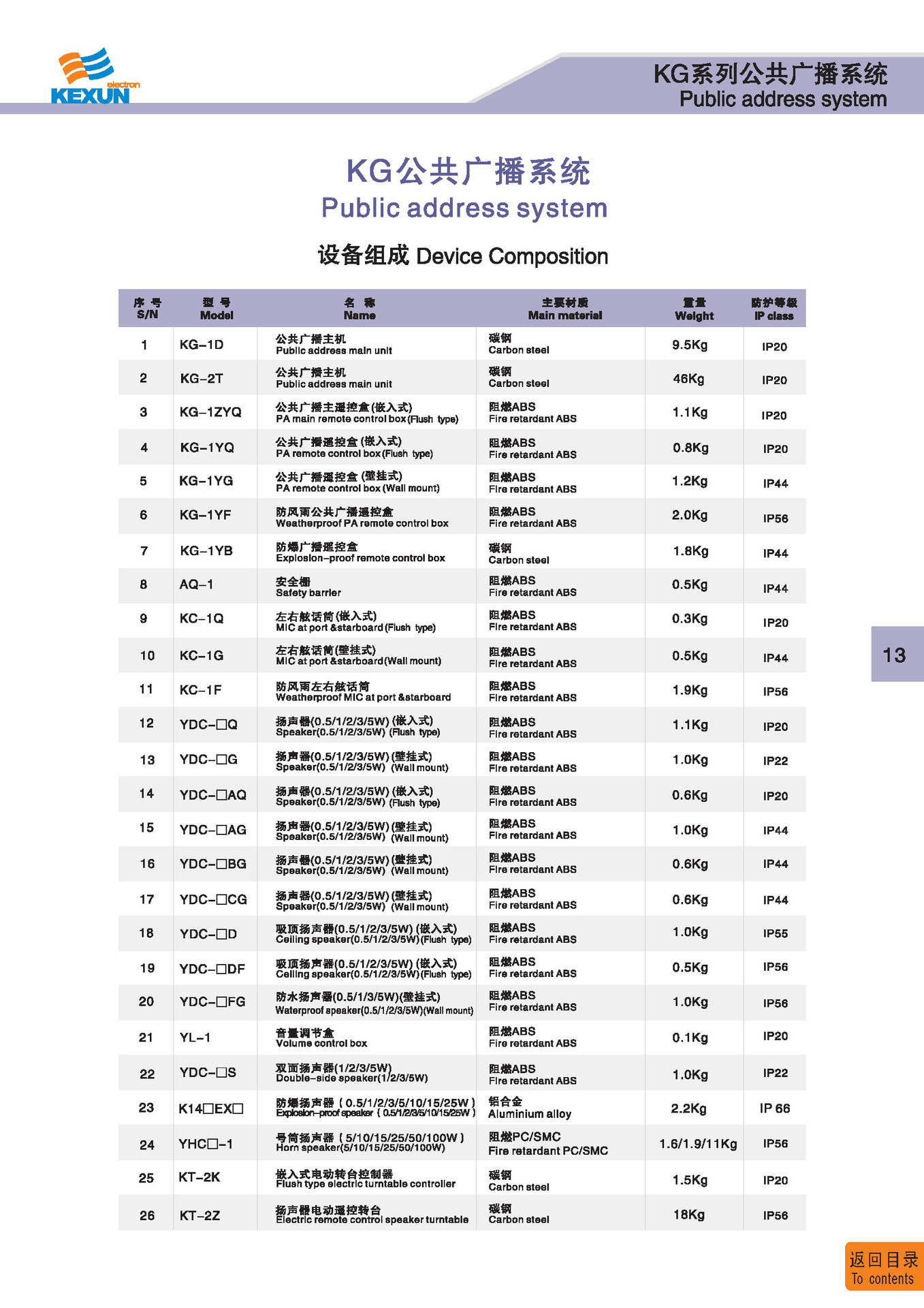 | 1 | KG-4 | 广播主机 Public address main unit | 碳钢 Carbon steel | 97Kg | IP 20 | 点击进入 Click to enter |