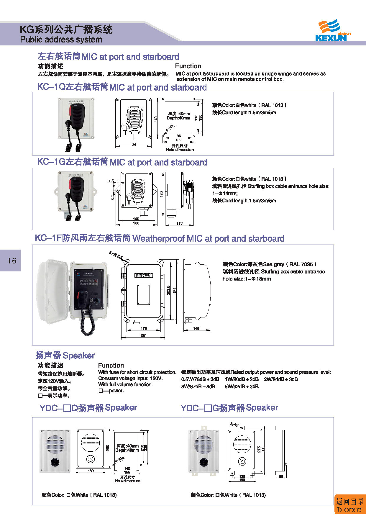 | 11 | KC-1F | 防风雨左右舷话筒 Weatherproof MIC at port & starboard | 阻燃ABS Fire retardant ABS | 1.9Kg | IP 56 | 点击进入 Click to enter |